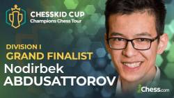 GM Nodirbek Abdusattorov is the first grand finalist of the Champions Chess Tour ChessKid Cup 2023 Division I after beating Jorden van Foreest in a close fight that nearly made it to armageddon. In the Losers Bracket, GM Fabiano Caruana eliminated GM Alireza Firouzja and will face GM Jules Moussard, who took out GM Dmitrij Kollars.