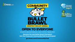 Have you watched Bullet Brawl yet? This two-hour monthly arena sees titled players compete against each other at lightning speed using a 1+0 time control.
