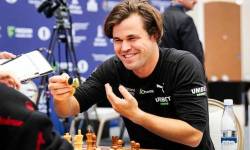 Carlsen sau ván hòa Daniil Dubov tại giải cờ chớp thế giới ở thành phố Samarkand, Uzbekistan ngày 30/12/2023. Ảnh: Chess