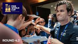 Carlsen confessed afterward that he’s fighting some inner demons in Baku: “Progressing in the World Cup is one thing… Honestly, almost since day one, I’ve been wondering, what am I doing here? Why am I spending all this time playing classical chess, which I just find stressful and boring? It’s also not a good state of mind!”