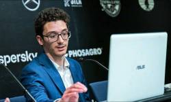Caruana không được đánh giá cao khi đấu cờ online, nhưng vẫn hạ Nepomniachtchi. Ảnh: FIDE.
