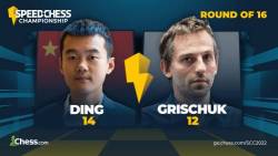 The 2022 Speed Chess Championship continued on Sunday with a round of 16 clash between world championship challenger GM Ding Liren and SCC qualifier GM Alexander Grischuk. The match, which ultimately ended in a 14-12 victory for the Chinese superstar, was marked by fierce attacking play from the super GMs and a brilliant queen sacrifice!