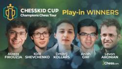GMs Alireza Firouzja, Kirill Shevchenko, Dmitrij Kollars, Anish Giri, and Levon Aronian fought their way through a field of 144 players, mostly grandmasters, and qualified through match play for Division I of the Champions Chess Tour ChessKid Cup 2023. They will join GMs Hikaru Nakamura, Fabiano Caruana, and Nodirbek Abdusattorov, who already qualified in the Knockout of the last CCT event.