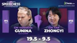 The FIDE Chess.com 2022 Women’s Speed Chess Championship resumed on Tuesday with a clash between two of the tournament’s powerhouses, with GM Valentina Gunina overcoming GM Tan Zhongyi with a resounding score of 19.5-9.5.