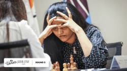 Tan’s performance in round five was close to perfect, and with the black pieces she weathered IM Gunay Mammadzada’s early ambitions and stopped White from castling, a rare occurrence in the Catalan Opening. The diversion from theory on move 11 suited Tan and, as the game developed, it was Mammadzada who had to prove her position was holdable.