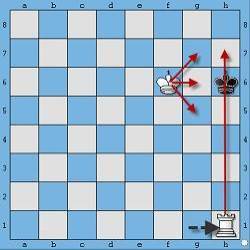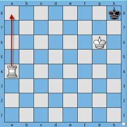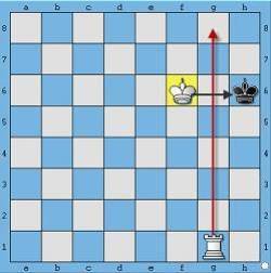 #2. Đưa Vua xuống đối diện Vua đối phương, tạo ra thế đối Vua. Ở thế đối Vua này, Vua bạn sẽ ngăn cản Vua đối phương không thể chạy lên trên. Và việc tiếp theo đơn giản chỉ là luồn quân Xe xuống hàng hoặc cột cuối cùng để chiếu hết Vua đối phương