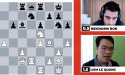 Lê Quang Liêm thắng nhanh kỳ thủ Hà Lan Benjamin Bok 4,5-0,5 ở tứ kết giải cờ chớp online Banter Blitz tối 5/7.