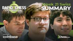 GM Sam Sevian won week 21 of the Rapid Chess Championship presented by Coinbase, starting the tournament with a 3-0 winning streak.